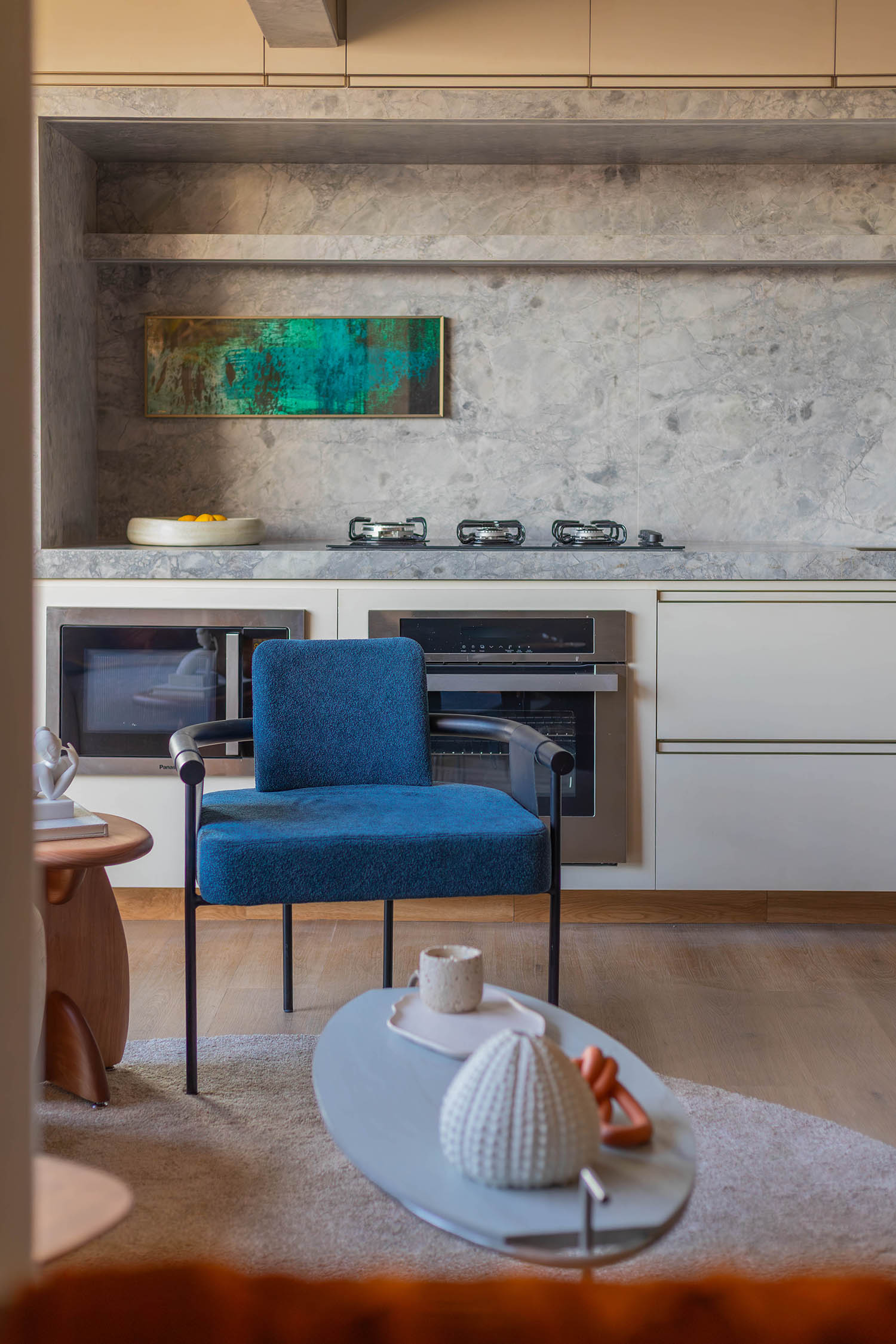Cada elemento foi escolhido para comunicar a ideia de um lar acolhedor, versátil e bem resolvido, onde o design é funcional e a decoração, equilibrada. O resultado é um espaço que traduz, de maneira objetiva e sensível, o potencial do empreendimento e convida a imaginar o cotidiano dos futuros moradores, seus rituais, hábitos e encontros possíveis.