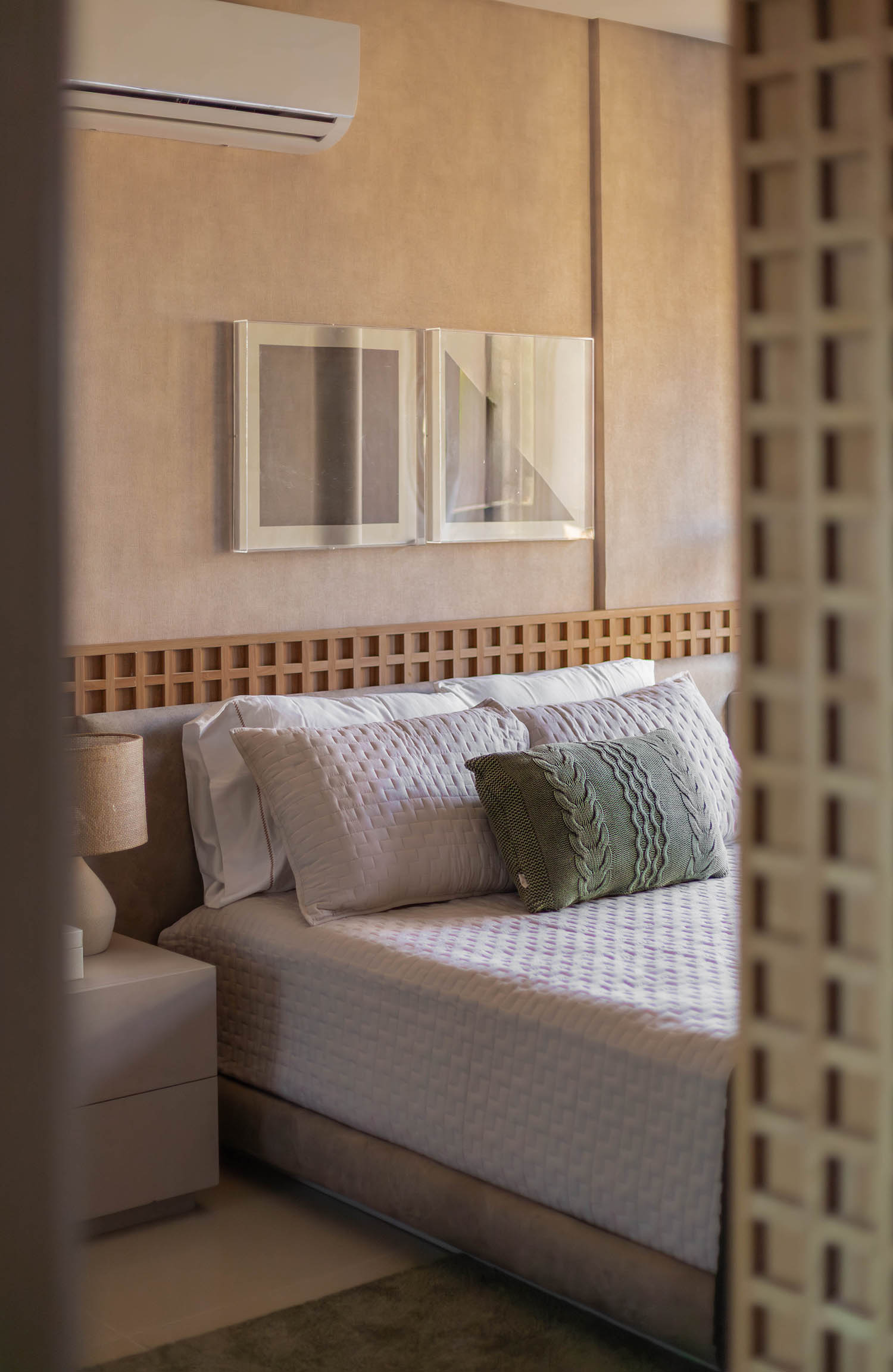 A proposta foi criar um apartamento charmoso e prático, alinhado ao conceito do empreendimento, cuja atmosfera se conecta diretamente à Praça das Flores, um dos principais cenários da região. As cores neutras e suaves dominam a paleta, trazendo sensação de amplitude e conforto, além de reforçar a elegância discreta que guia todo o projeto.