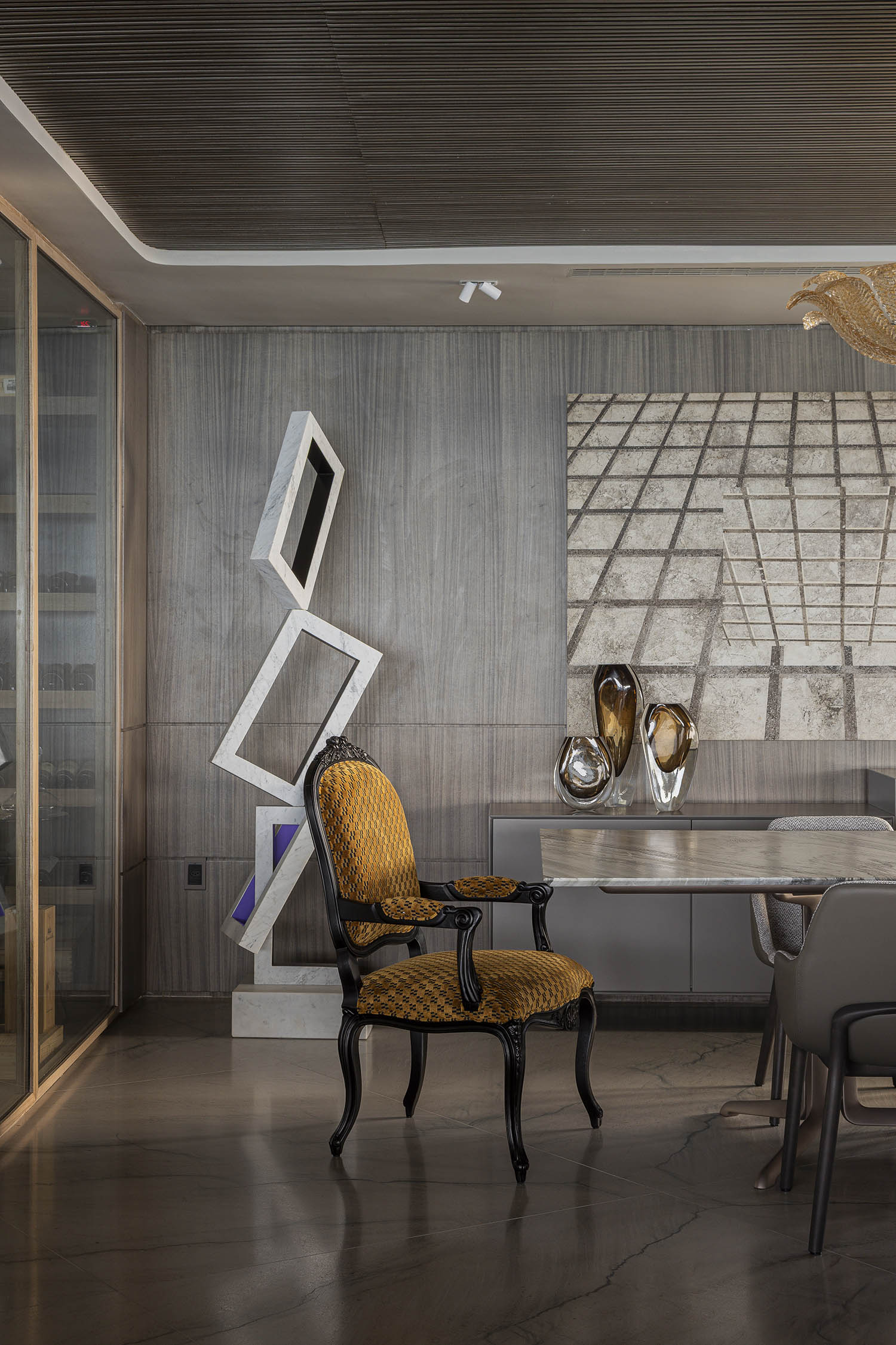 A curadoria percorre tempos e narrativas. Entre grandes nomes do design brasileiro, obras de artistas cearenses e peças autorais do escritório, o espaço se constrói como um diálogo entre história e identidade. Cada objeto tem peso e sentido, mas nada pesa: há respiro e espaço para a vida que se move entre as formas.