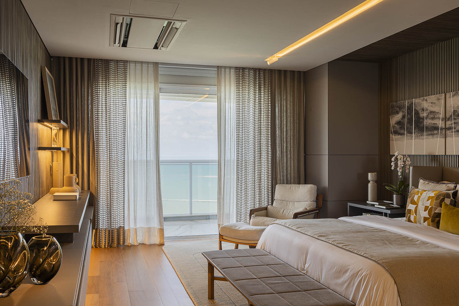 No alto do skyline de Fortaleza, em um dos apartamentos do One Residencial, projetamos um espaço que traduz a essência do morar bem. Com mais de 600 m² e vista para o mar, o projeto nasce do encontro entre memória e renovação, em uma nova morada para clientes que retornam à nossa prancheta.