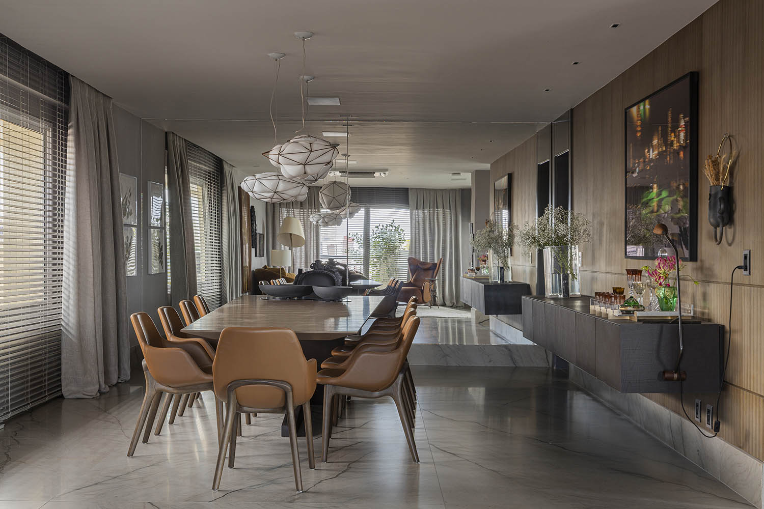 Pensado como uma morada de retorno, o Apartamento Refúgio, um duplex de 600 m², se transforma no ponto de apoio afetivo para uma família que, mesmo vivendo em São Paulo, mantém raízes profundas com Fortaleza. Mais do que uma residência temporária, o projeto representa o reencontro com a cidade natal, com os vínculos familiares e com a própria memória afetiva.