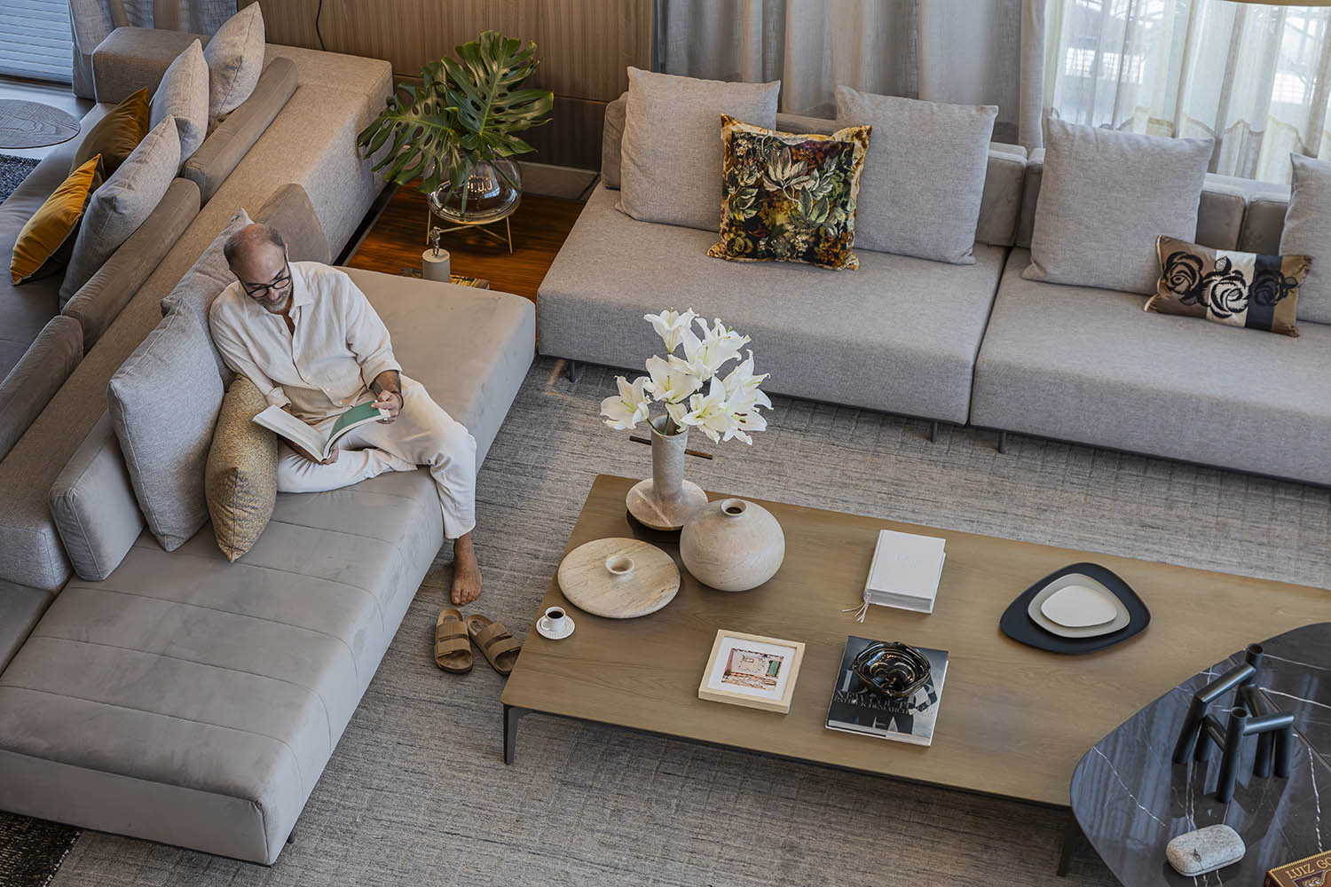 O Refúgio não é abrigo passageiro. É a extensão emocional de uma trajetória. A paleta neutra, os tecidos naturais e o espaçamento entre peças permitem que a luz, a brisa e o tempo habitem o espaço. Arquitetura e afeto se entrelaçam em um lugar de permanência e contemplação.
