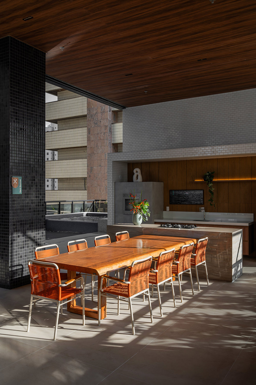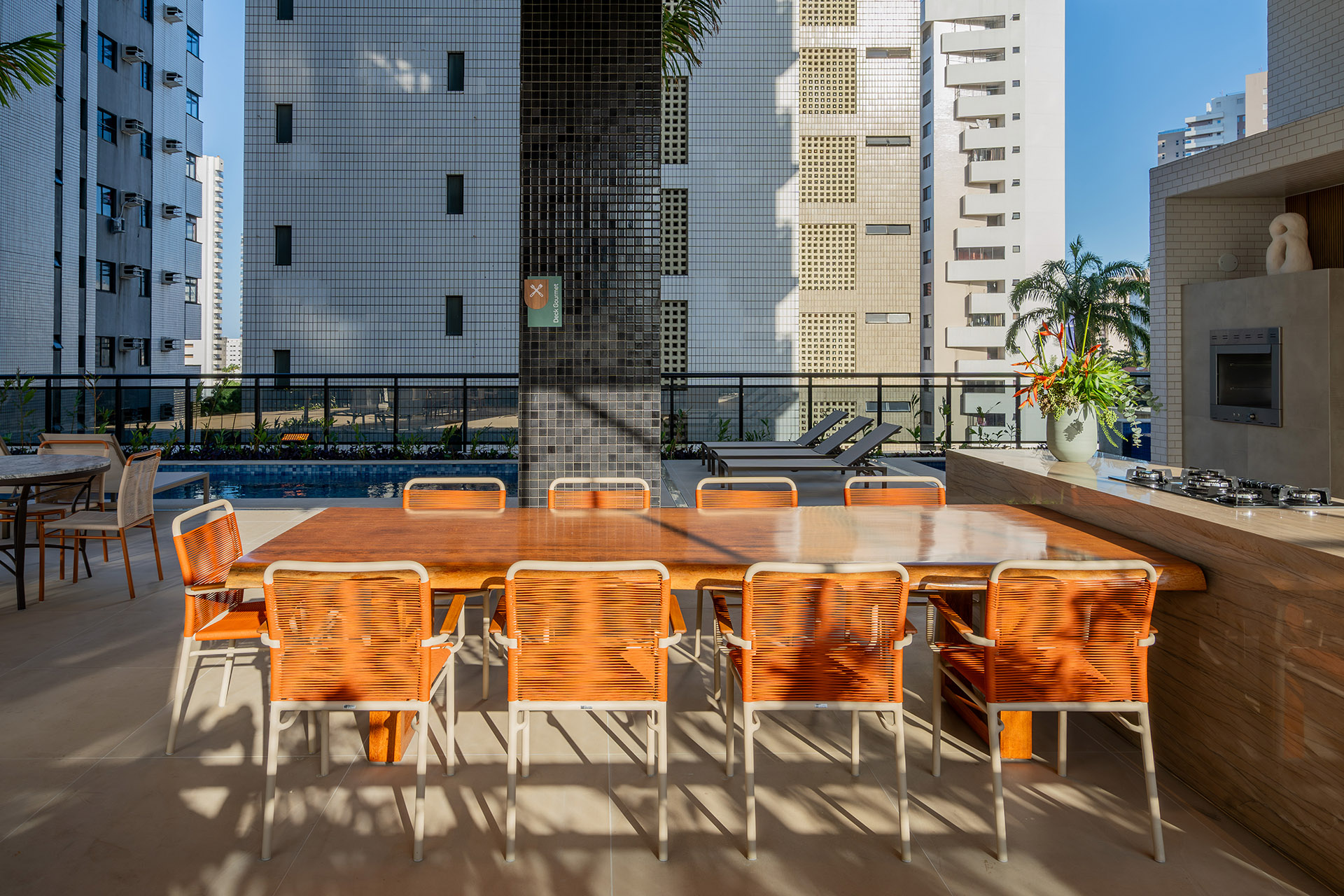 No pavimento de Lazer, o foco está em oferecer infraestrutura completa para eventos sociais. O salão de festas atende às necessidades cotidianas dos moradores, enquanto o deck gourmet, totalmente equipado, garante versatilidade para celebrações.