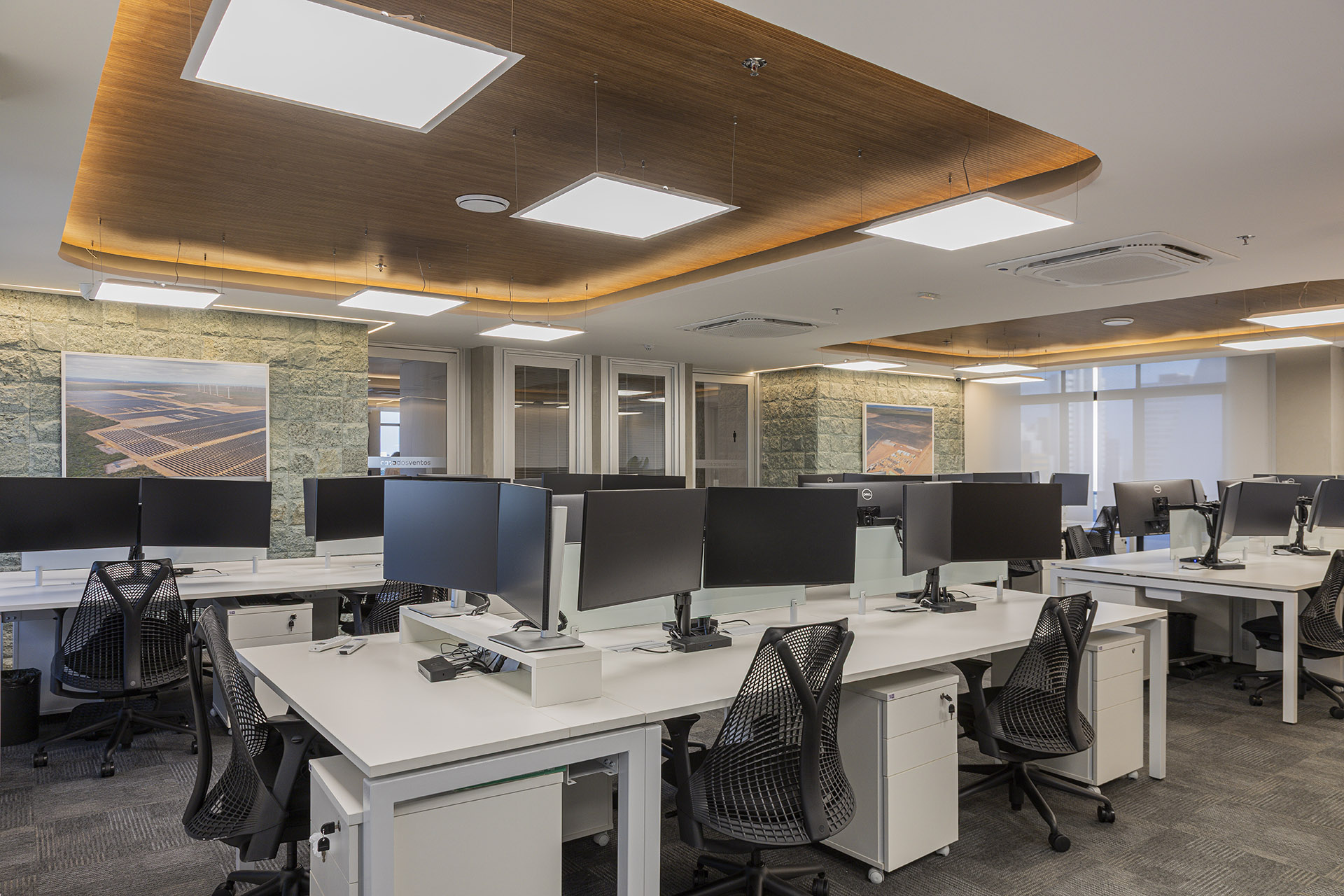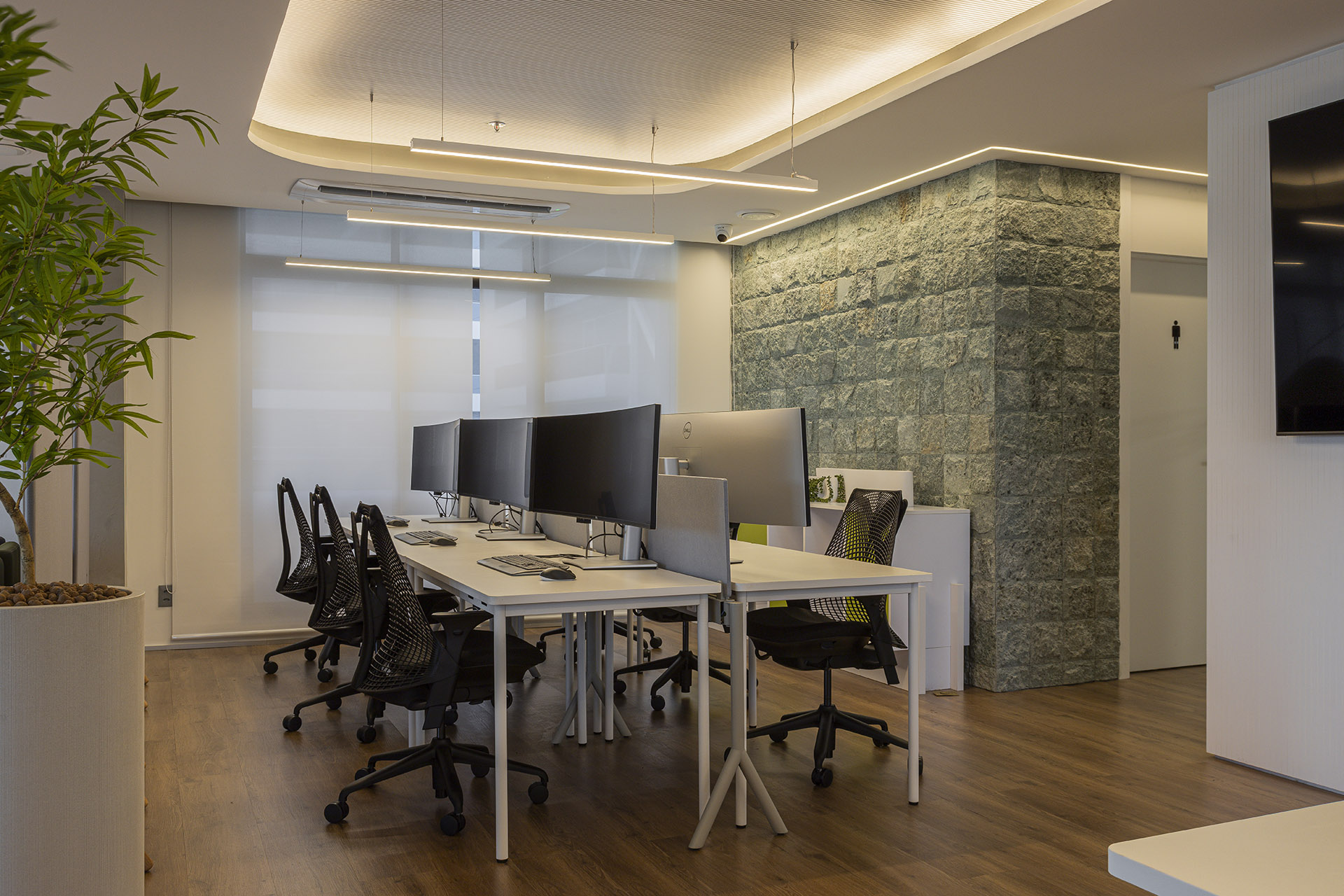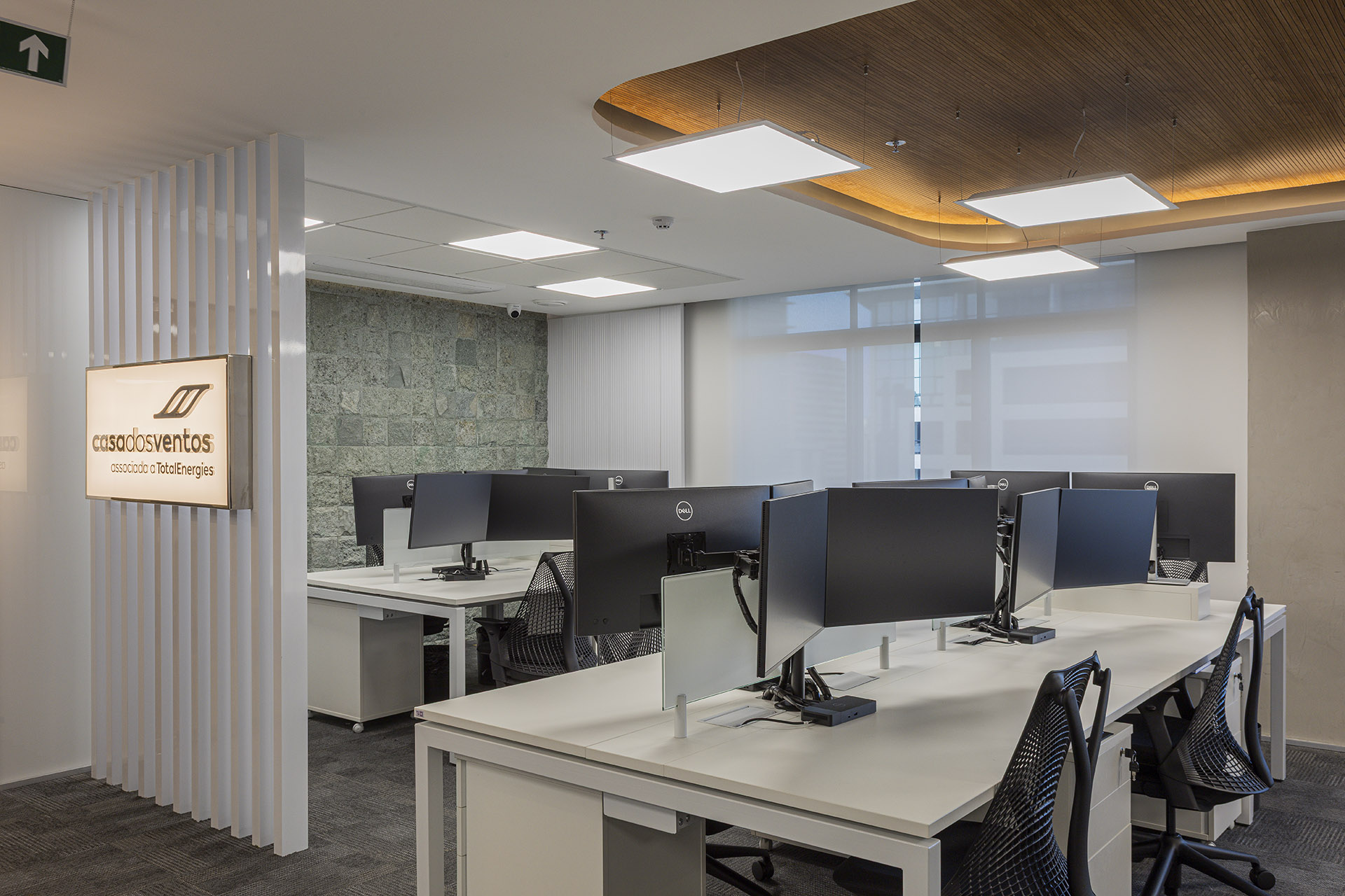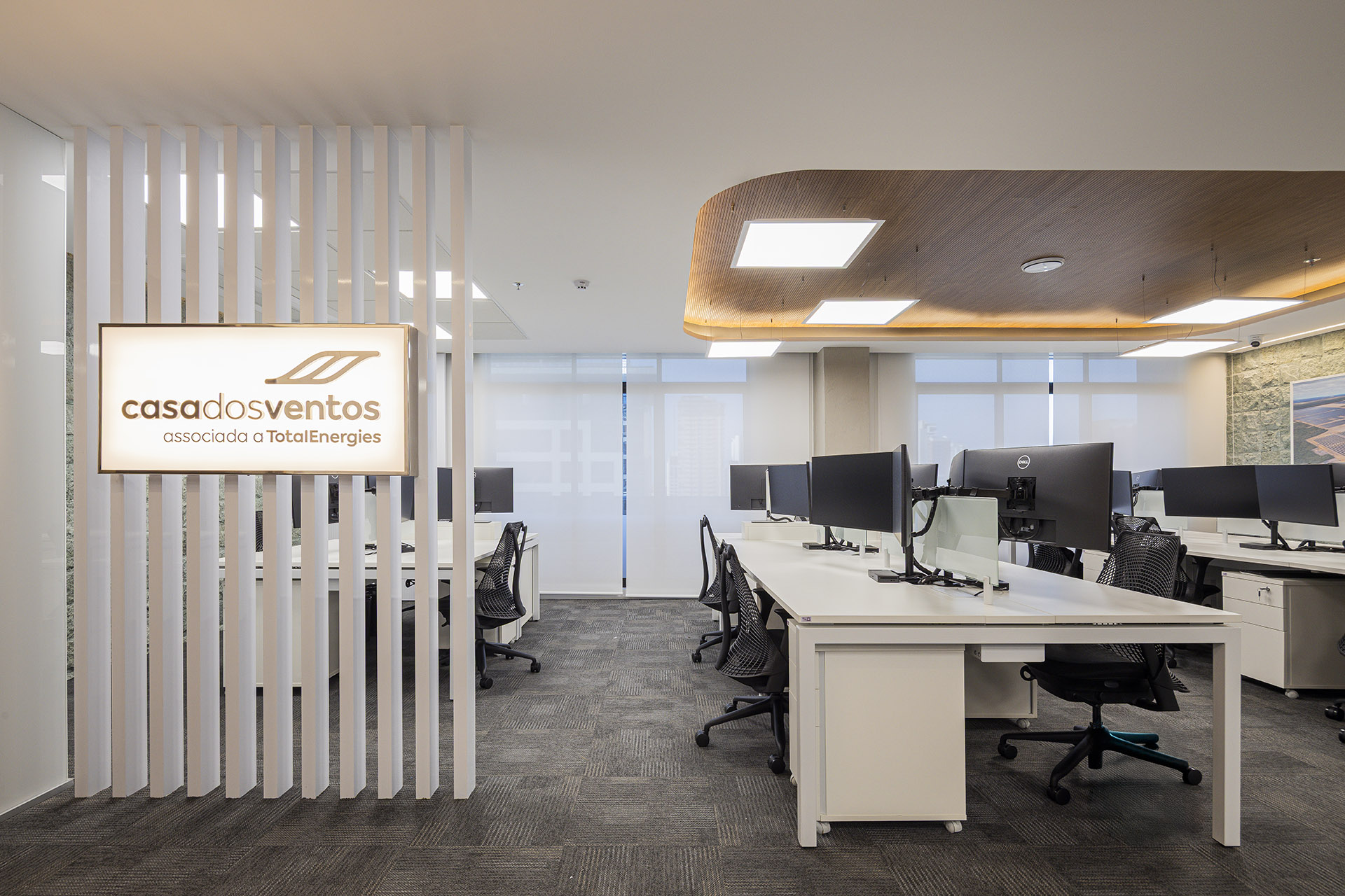 Na sexta expansão da sede da Casa dos Ventos, referência em transição energética, seguimos aprimorando soluções espaciais com base na matriz dos projetos anteriores. O crescimento da equipe e a evolução do cenário corporativo impulsionam novas respostas, respeitando a identidade já consolidada.
